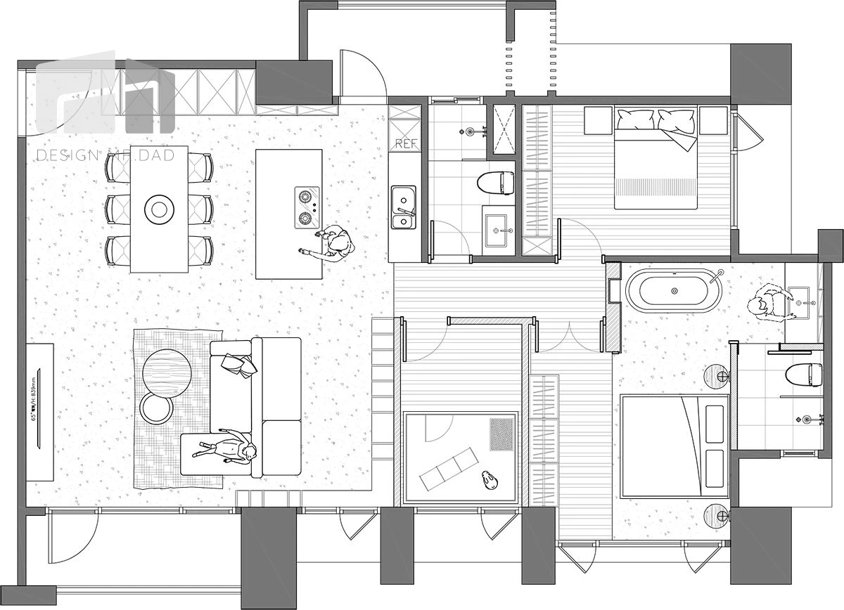 設計以「留白」為核心概念,減少裝飾性線條,讓材質本身成為空間主角。大面白牆搭配木質地坪,形塑乾淨而不冰冷的居住氛圍。公共空間尺度寬敞,適合家庭聚會與日常交流。家具配置以低背、輕量為主,維持視覺通透感。整體設計不刻意追求風格張力,而是讓居住者在長時間生活中,依然感到舒適與放鬆。