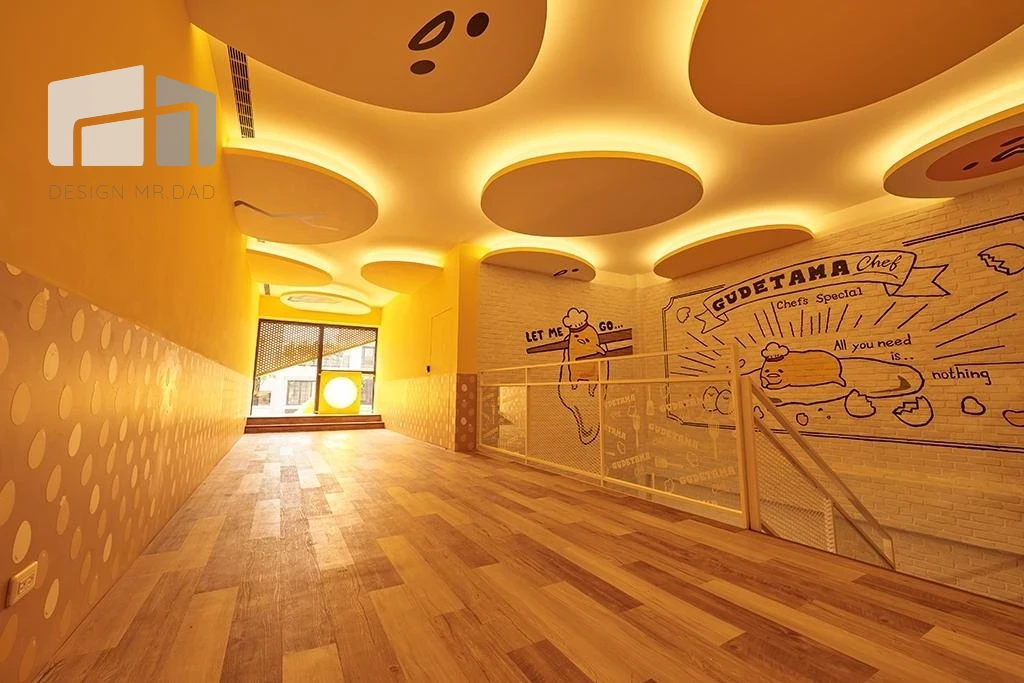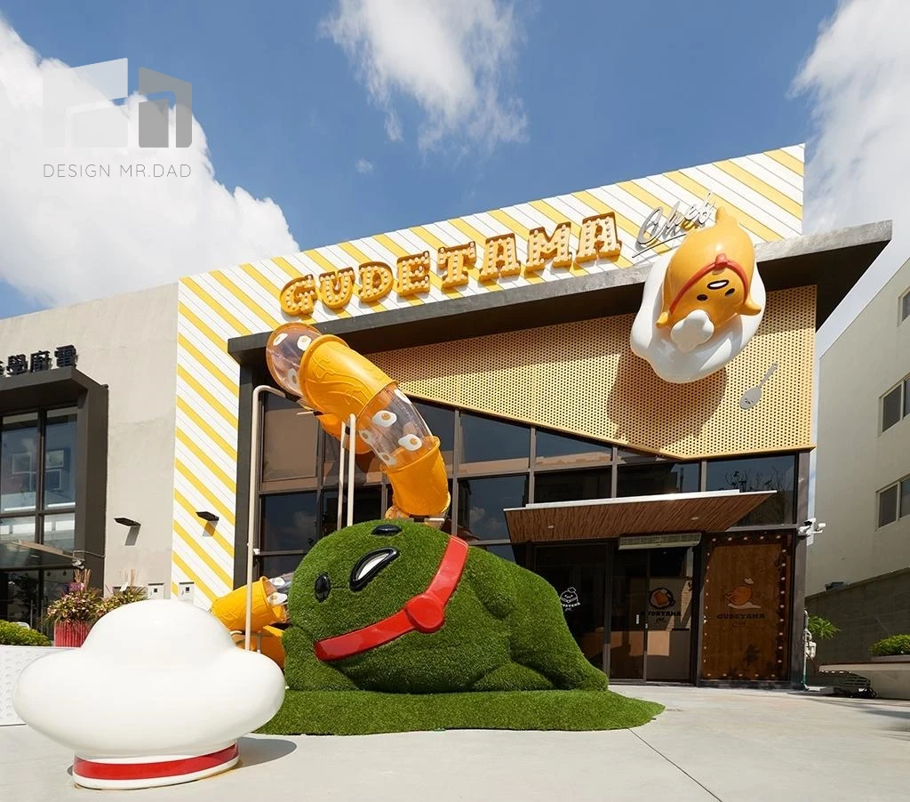 蛋黃哥主題餐廳為主題,設計靈感來自老街店舖與過往生活場景。空間中大量運用木質、鐵件與仿舊材質,搭配暖色系燈光,營造出親切而不做作的氛圍。牆面刻意保留粗獷質感,搭配復古海報與展示櫃,讓空間充滿時間痕跡。動線安排上,以吧檯作為核心,形成自然聚集的交流節點,增加顧客停留時間。整體設計不追求完美無瑕,而是透過不規則與歲月感,塑造具有情感溫度的商業場域,使顧客在消費過程中,產生情緒連結與記憶點,進而提升品牌黏著度。
